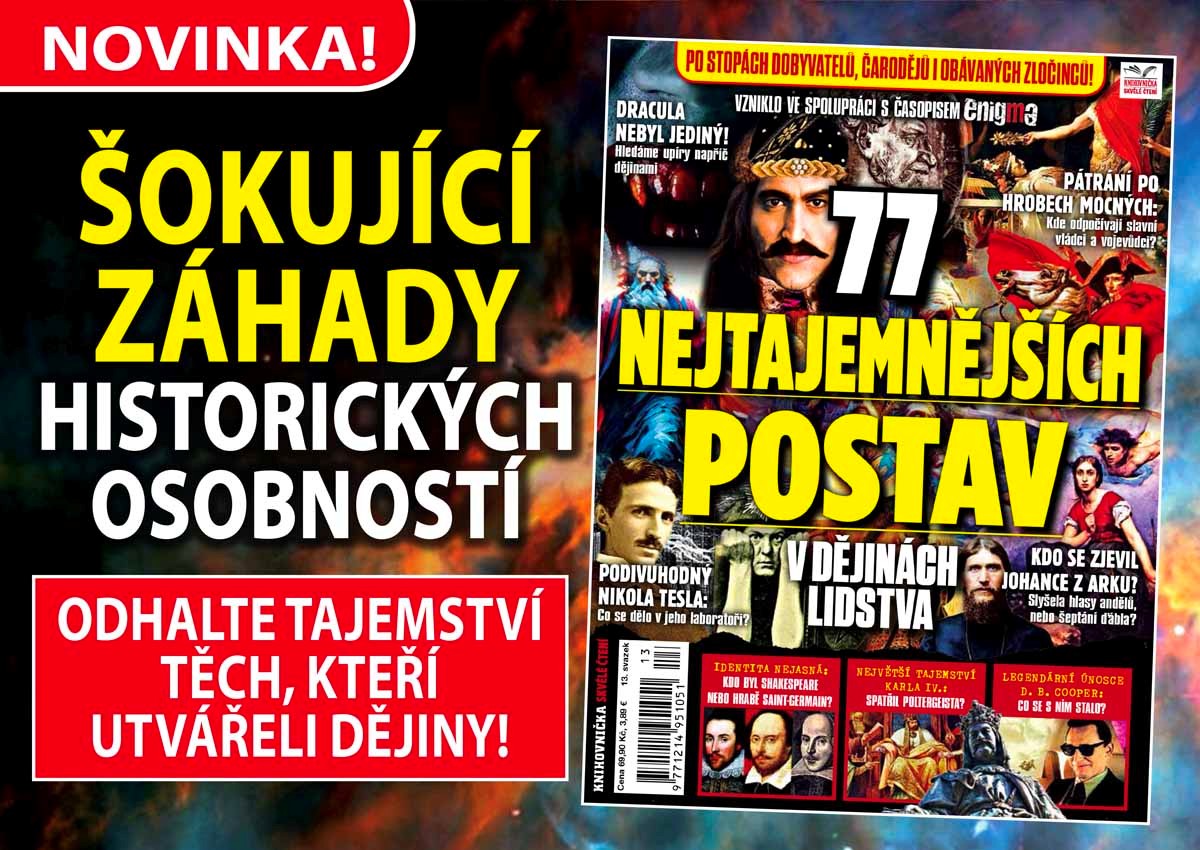 Na stánky dorazilo nové vydání unikátního titulu Knihovnička Skvělé čtení, tentokrát v spolupráci s časopisem Enigma! A opět vás čeká 130 stran nabitých informacemi, tentokrát zaměřenými na nejtajemnější osobnosti historie. Vydejte se spolu s námi do světa záhad a tajemství!