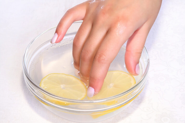 Vymačkejte citronovou šťávu do trochy teplé vody a nehty do ní ponořte. Netrpěliví mohou nehty zabořit přímo do dužiny rozpůleného citronu.