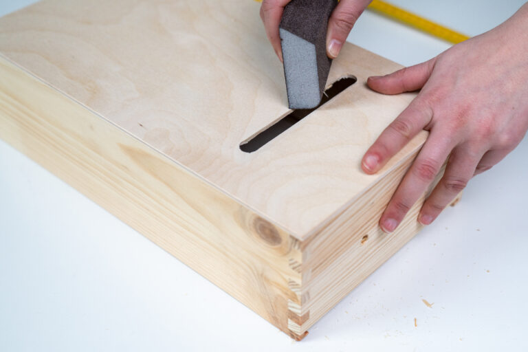 Krok číslo 2: Po vyříznutí vám vznikne otvor na vhazování dopisů. Jeho hrany vyhlaďte brusnou houbou.