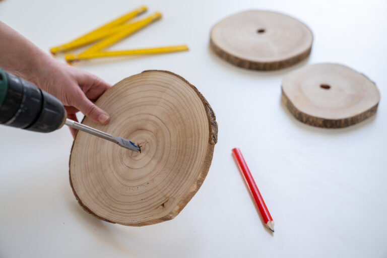 Krok číslo 1: Pomocí sukovníku vyvrtejte do středu kulatin otvor o průměru asi 14 mm.