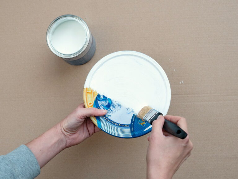 Krok číslo 1: Dózy nejprve natřete ze všech stran bílou barvou ve dvou vrstvách s odstupem přibližně dvě hodiny.