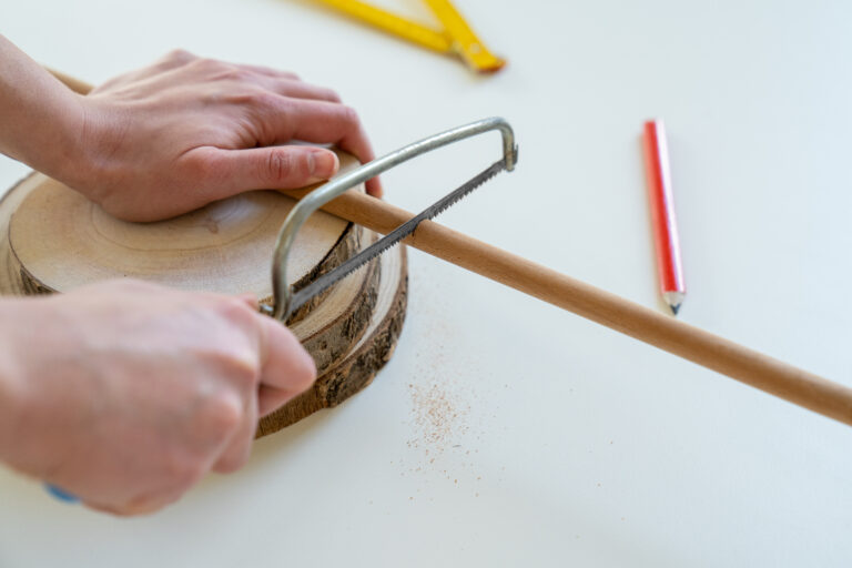 Krok číslo 2: Dřevěnou tyč dle potřeby pilkou zkraťte asi na délku 45 cm.