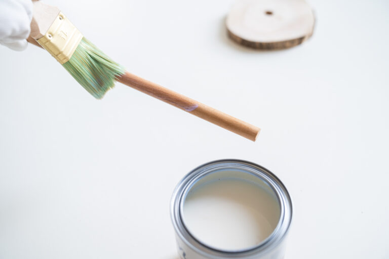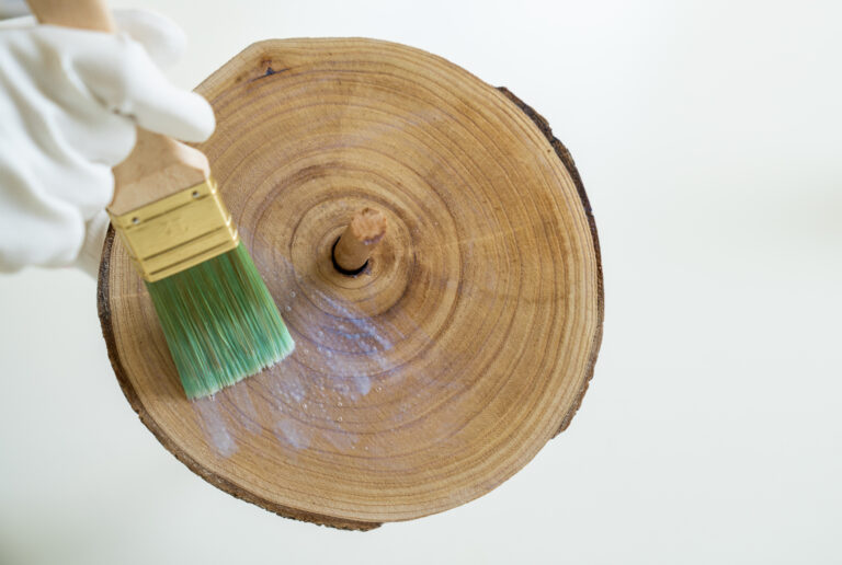 Krok číslo 3: Nátěr důkladně promíchejte a kulatiny po směru dřeva z obou stran natřete. Aby se vám při natírání kulatiny lépe držely, můžete použít dřevěnou tyč, kterou provléknete vyvrtaným otvorem. Tyč na závěr nezapomeňte také nalakovat.