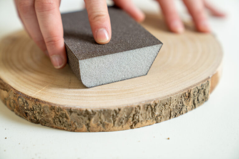 Krok číslo 4: První vrstvu laku nechte zaschnout asi 2 hodiny. Poté povrch jemně zdrsněte pomocí brusné houby a na všechny části etažéru naneste druhou vrstvu nátěru.