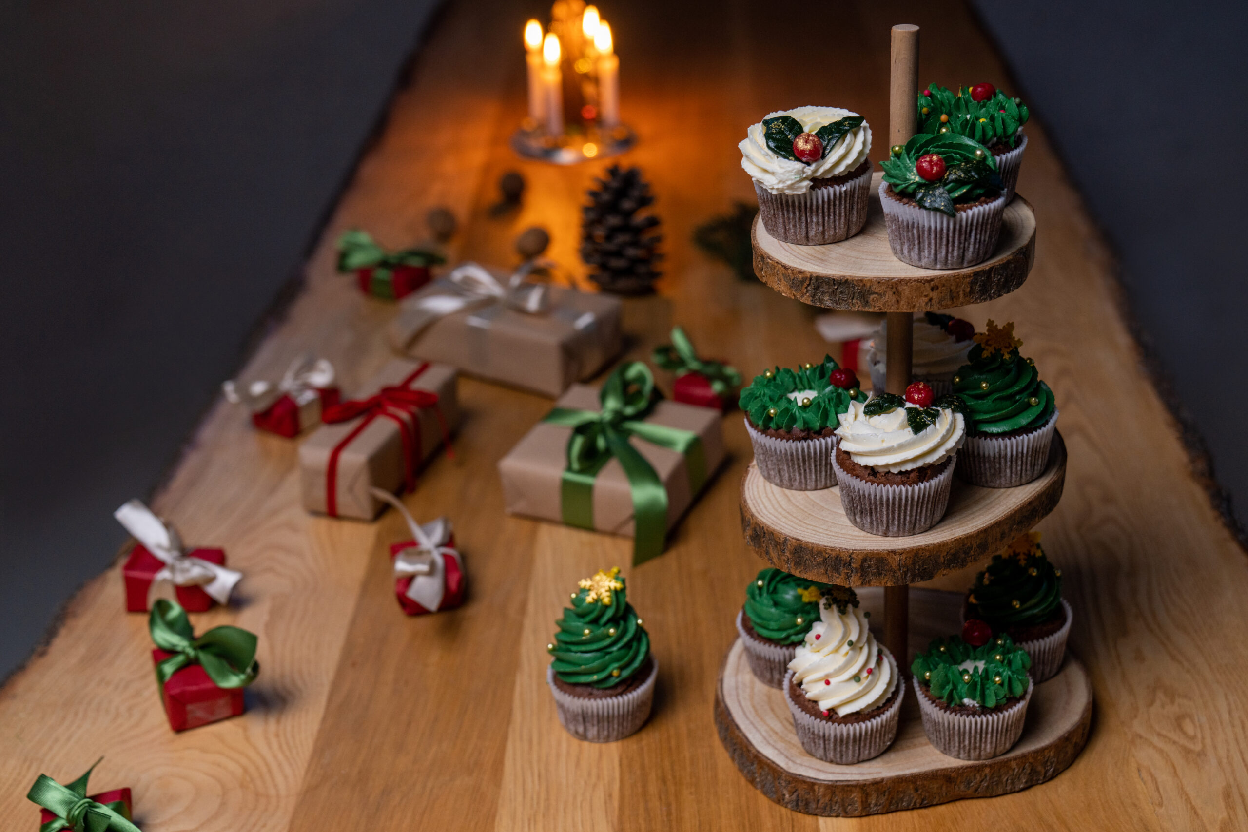 Etažér z kulatin dovede vaši vánoční výzdobu k dokonalosti, a navíc ušetříte místo na stole.