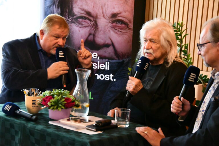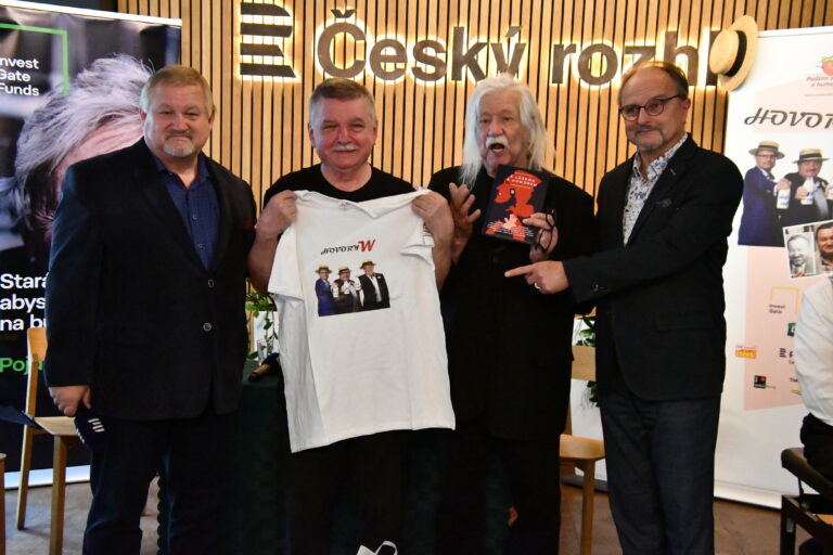 Nejen na tohle téma si po představení povídali populární písničkář, fotograf a filozof života Josef Fousek a pánové Jiří Werich Petrášek a Pavel Mészáros, kteří si tohoto nezaměnitelného a stále velmi oblíbeného umělce a barda pozvali do své talk show Hovory W. Ve zcela zaplněné rozhlasové kavárně Radiocafé tak zněla hudba, milé slovo, životní filozofie i občas také trochu černý humor.